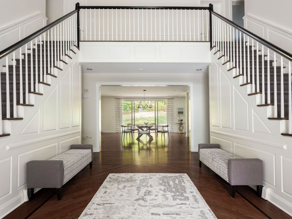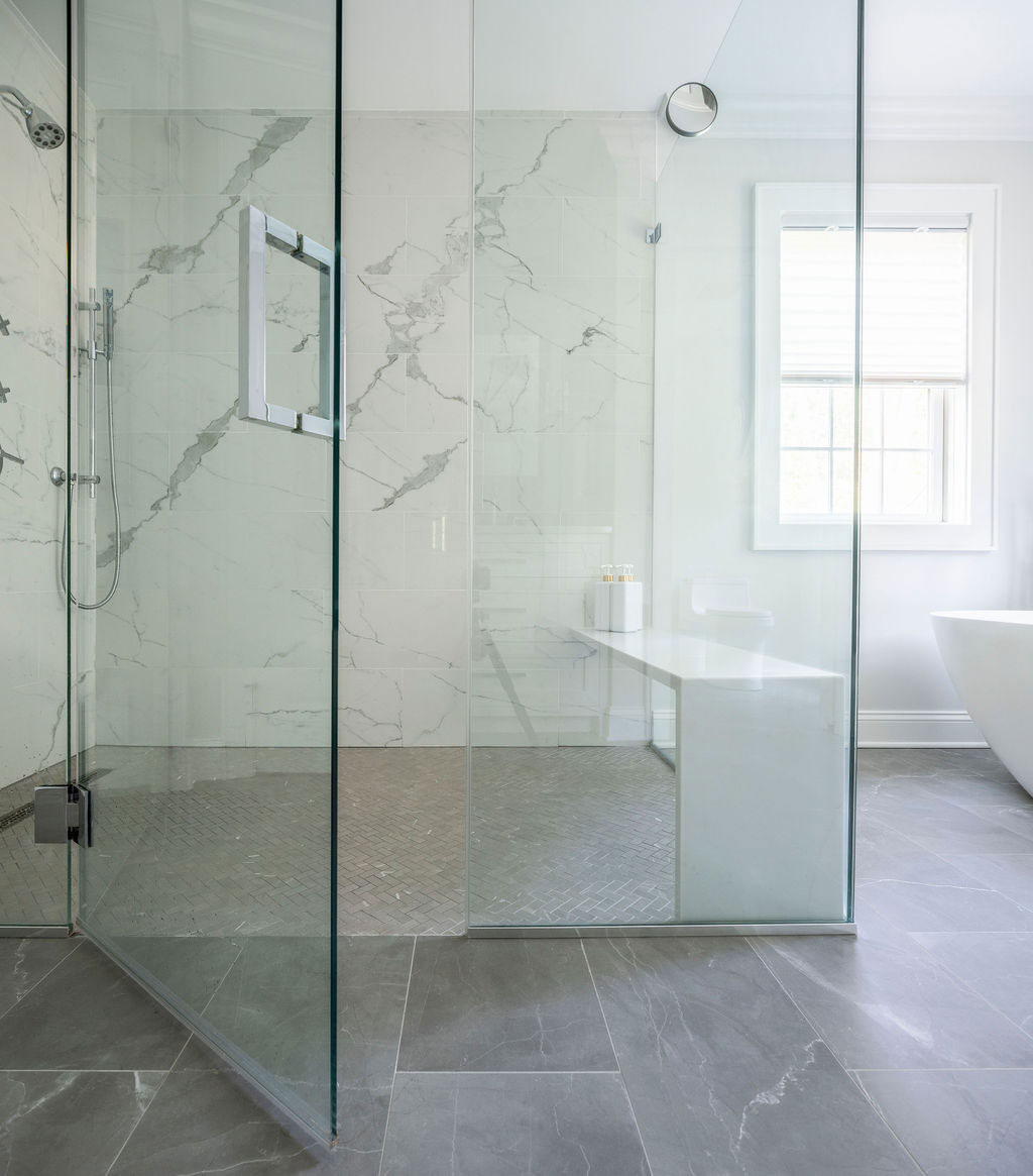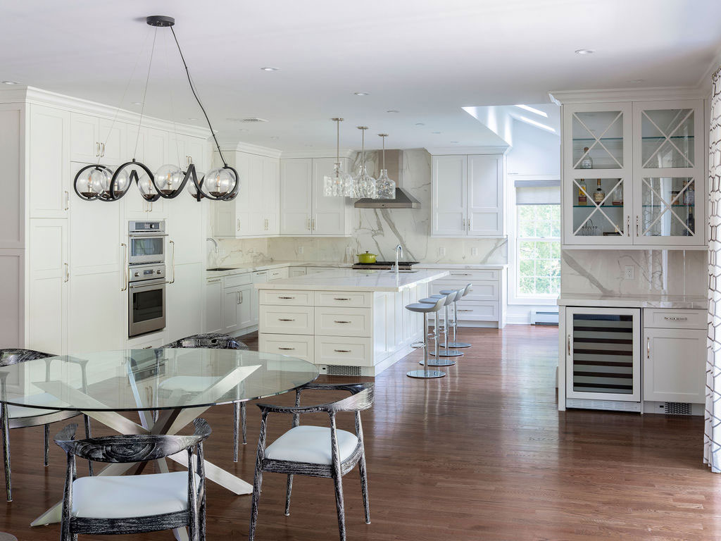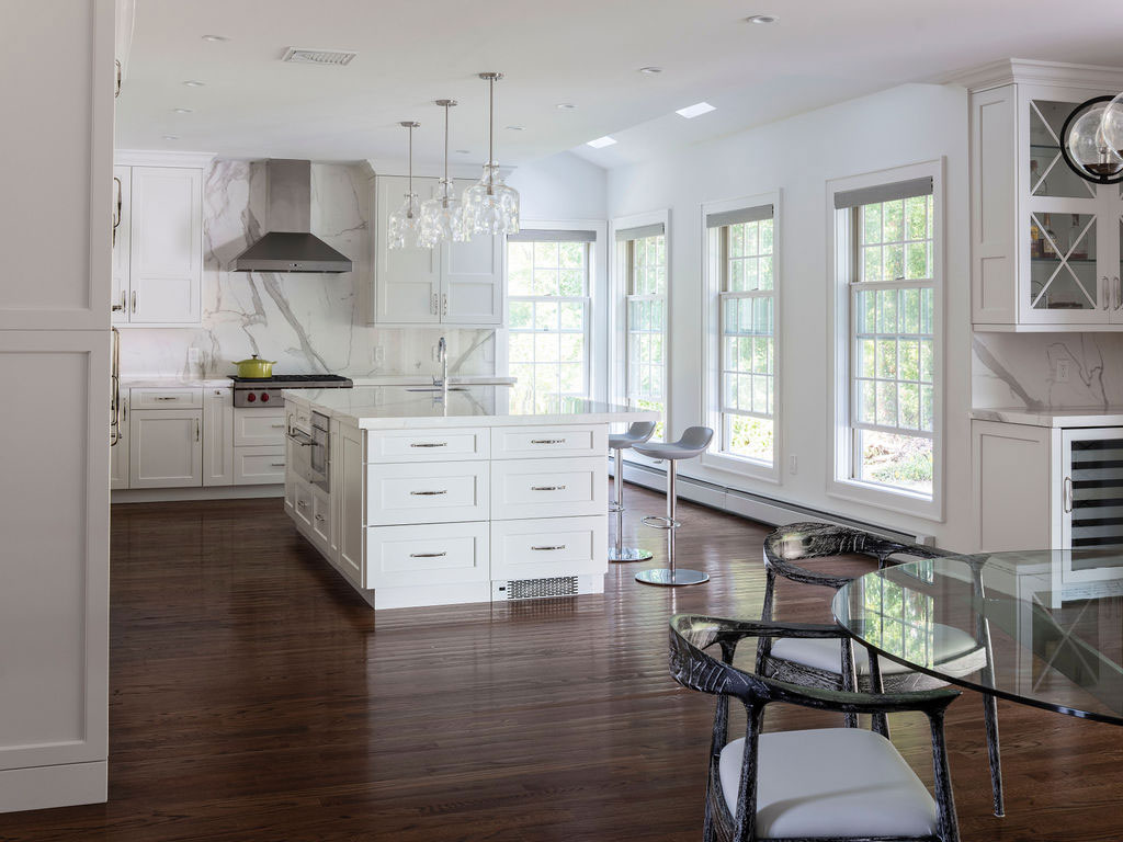 There were a few rooms in this house that needed an update so we expanded out the back of the house and created a new opening from the entry to enjoy the new expansion right when you walk in. The kitchen and island were designed for conversations, gatherings as well as serious cooking there is even a pop-up mixing stand. The Kitchen opens up directly onto the Dining area and the Family Room creating a family and friend space for all to enjoy. Also on the first floor are the updated Bathroom and Mudroom. The Master Bathroom was completely stripped down and re-designed to include a curb-less shower with bench, separate water closet, free standing soaking tub, a double vanity along with heated floors.