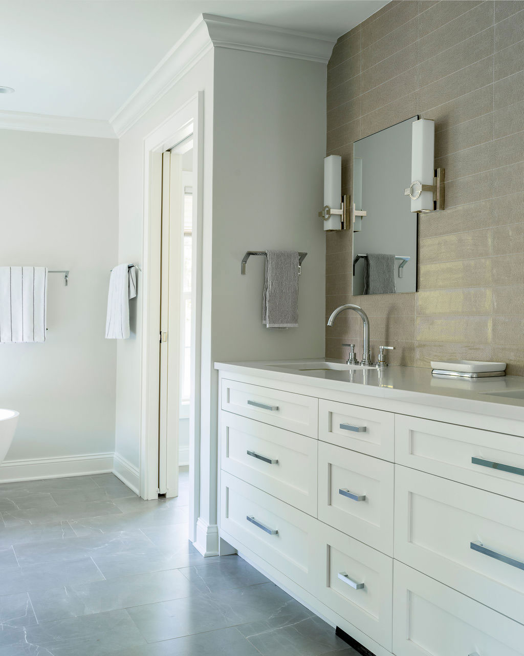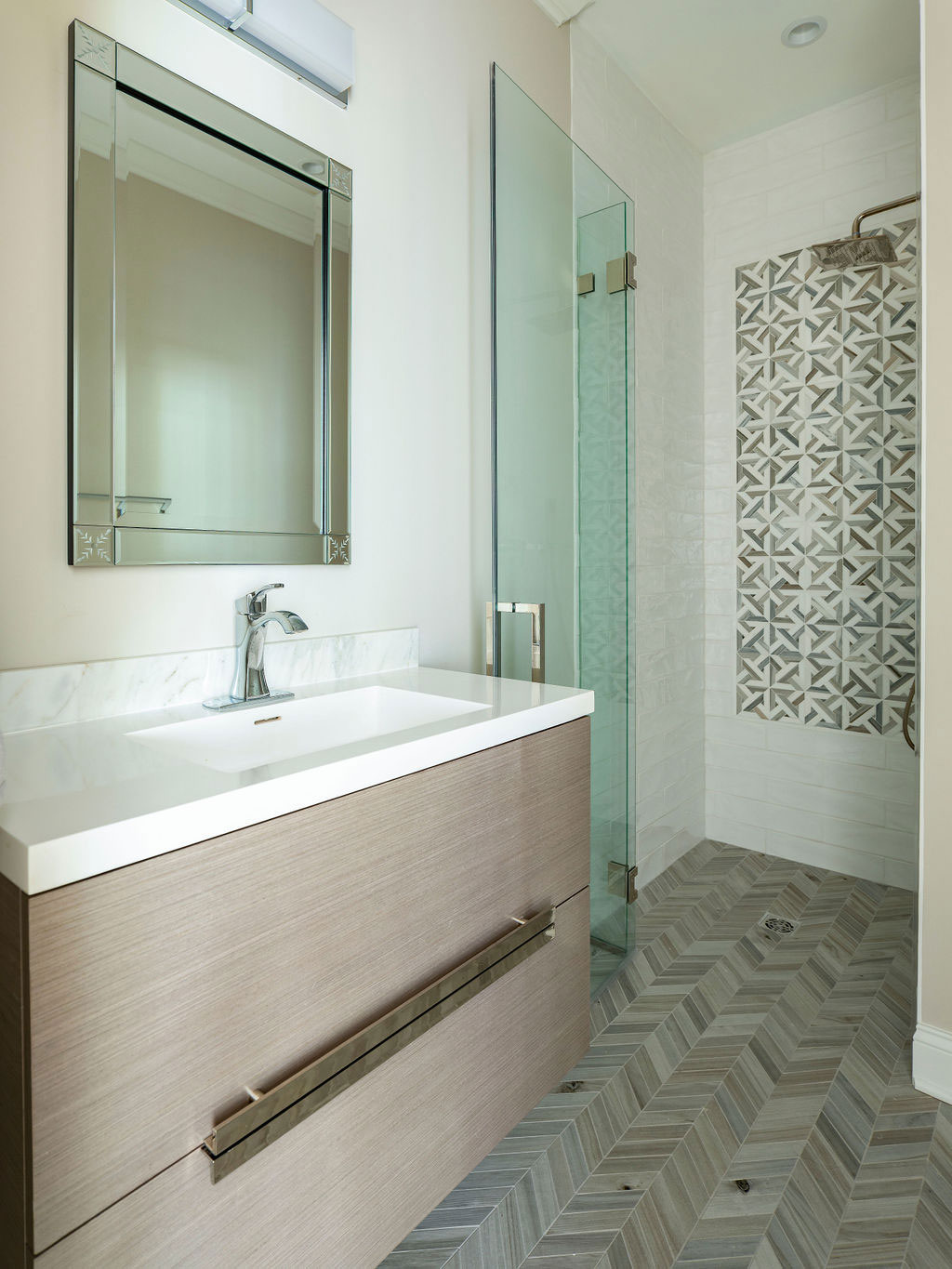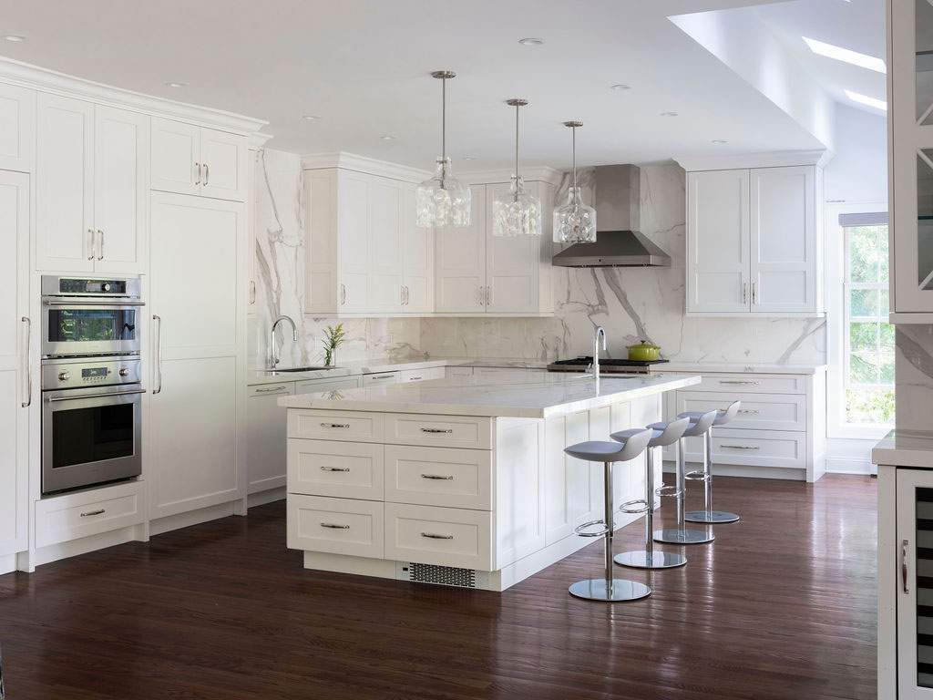 There were a few rooms in this house that needed an update so we expanded out the back of the house and created a new opening from the entry to enjoy the new expansion right when you walk in. The kitchen and island were designed for conversations, gatherings as well as serious cooking there is even a pop-up mixing stand. The Kitchen opens up directly onto the Dining area and the Family Room creating a family and friend space for all to enjoy. Also on the first floor are the updated Bathroom and Mudroom. The Master Bathroom was completely stripped down and re-designed to include a curb-less shower with bench, separate water closet, free standing soaking tub, a double vanity along with heated floors.